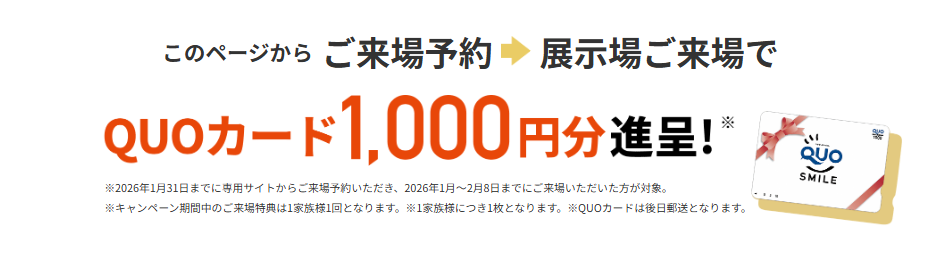 以下のご来場フォームからのご予約でQUOカード1000円分進呈!