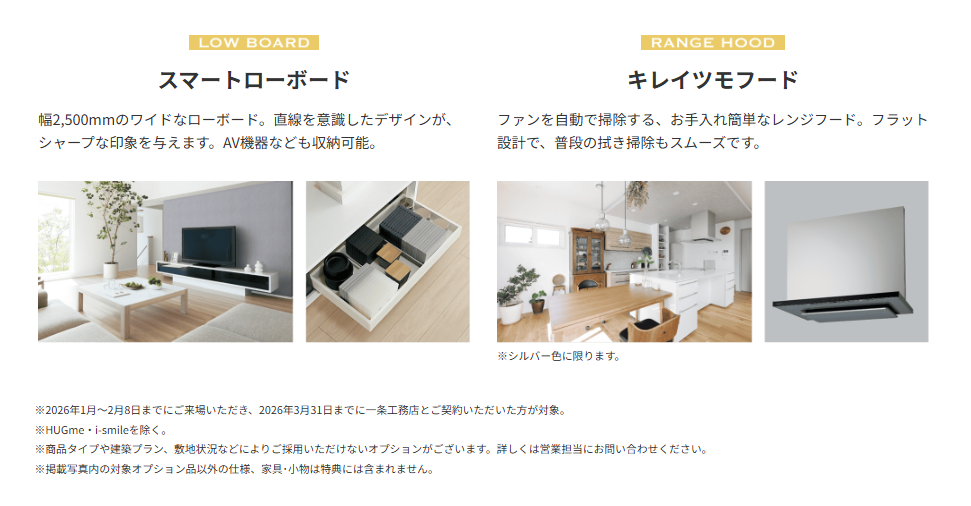 ※2026年1月~2月8日までにご来場いただき、2026年3月31日までに一条工務店工務店とご契約いただいた方が対象。