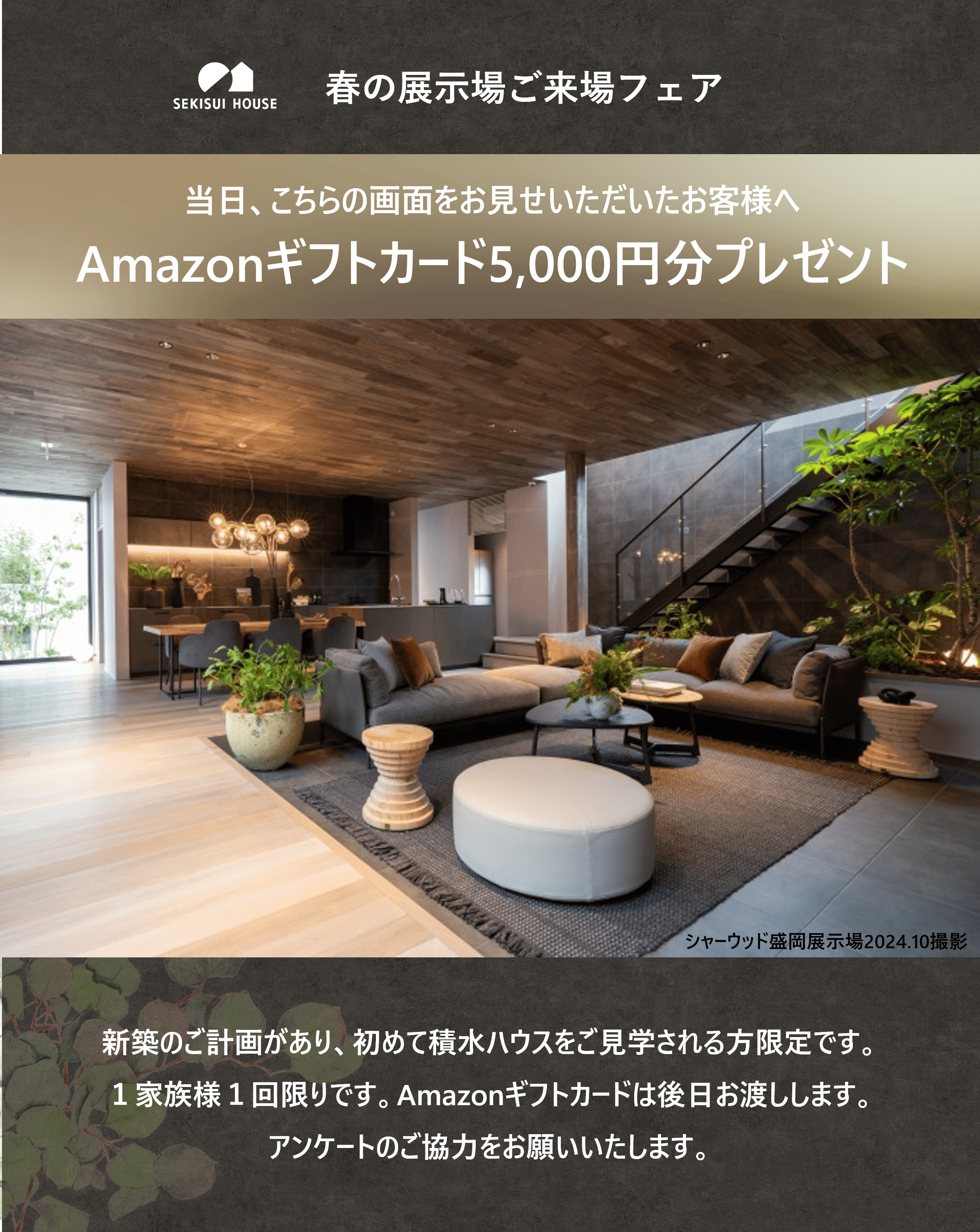 🎁春の展示場フェア!ご来場でAmazonギフトカード5,000円分プレゼント🎁